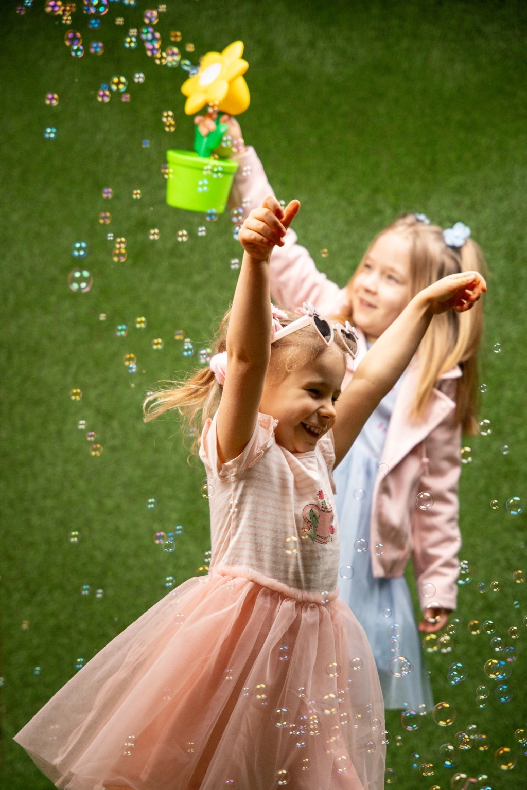 L’illuminazione LED integrata dona alle bolle brillantezza e magia, rendendole visibili e accattivanti anche con poca luce.