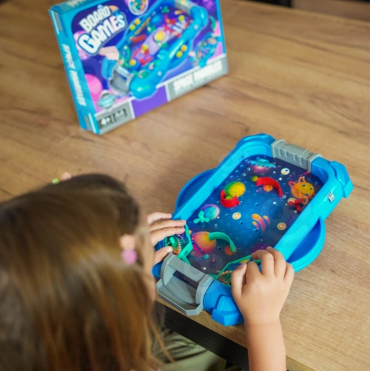 Scopri il fascino del flipper in versione per bambini. Questo gioco da tavolo a tema spaziale del marchio WOOPIE ricorda un vero flipper, con lanciatore, leve e bersagli con punteggio. Grazie a regole semplici, anche i più piccoli possono partecipare facilmente e allenare precisione, prontezza e pianificazione.