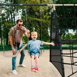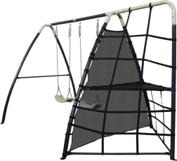 I singoli componenti sono progettati con attenzione al comfort e alla sicurezza. Potenti ancoraggi al suolo forniscono stabilità, anche quando i bambini giocano intensamente. I sedili in polipropilene sono leggeri, resistenti e facili da pulire. La forma ergonomica e la giusta profondità della rete da arrampicata assicurano comfort e ulteriori attrazioni durante il gioco.