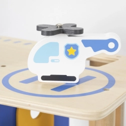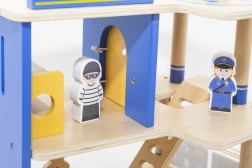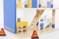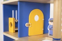 La stazione di polizia VIGA a tre piani è progettata per piccoli agenti dai 3 anni. La solida struttura in legno con dettagli blu offre facile accesso a tutti i livelli e consente ai bambini di ricreare realisticamente interventi, inseguimenti e arresti. Grazie all’eliporto, alla cella e al poligono di tiro, il gioco acquista nuove dimensioni.