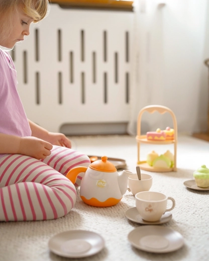 L’elegante set da tè per bambini WOOPIE con dessert offre fino a 25 pezzi per allegri pomeriggi in compagnia. I bambini possono versare il tè, servire i dolcetti e sviluppare immaginazione, motricità fine e abilità sociali. Le delicate tonalità pastello e la realizzazione sicura faranno felice ogni piccolo anfitrione dai 3 anni in su.
