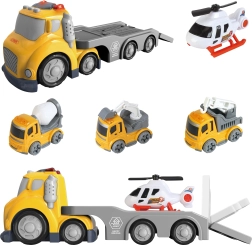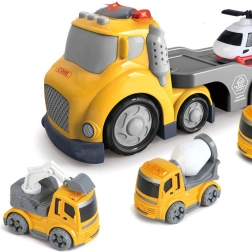Kit di traino giallo WOOPIE della serie CITY TRUCK offre al tuo bambino la possibilità di diventare un piccolo soccorritore. Realizzato in materiali di alta qualità, il kit include un grande camion rosso con carro attrezzi, un elicottero e un piccolo camion dei pompieri. Gli effetti luminosi e sonori garantiscono che il gioco sia ancora più realistico ed emozionante.