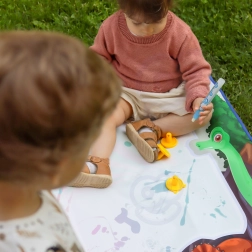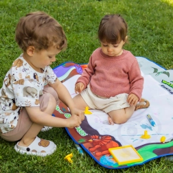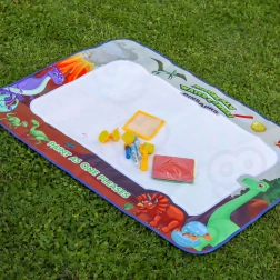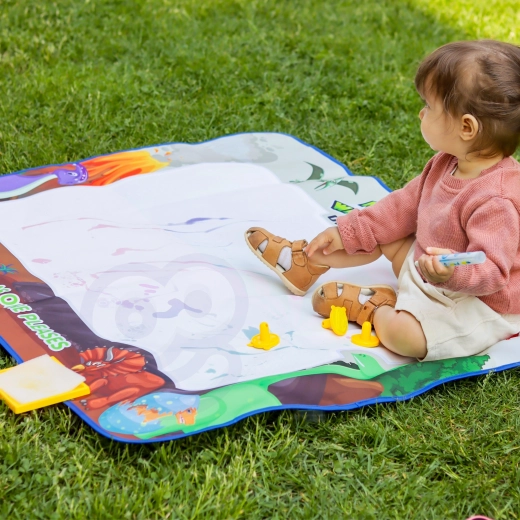 Il grande tappetino ad acqua con tema dinosauri trasforma il pavimento in un atelier creativo. Si disegna solo con acqua: niente macchie, niente odori, zero pensieri. Quando l’acqua si asciuga, gli scarabocchi scompaiono e la superficie è di nuovo pronta per nuove idee.