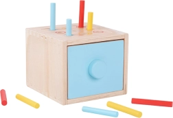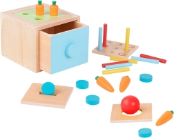 - - Contiene 26 pezzi: cassetto, 4 inserti di classificazione, 1 pallina rossa, 5 monete, 5 carote, 9 bastoncini in tre colori