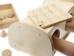 Si consiglia di utilizzare il set in combinazione con la scatola per Scopri forme indovinando al tatto (ME04055). È disponibile anche un vassoio in legno per riporre i giocattoli.