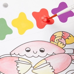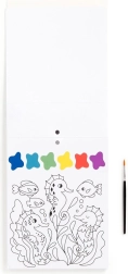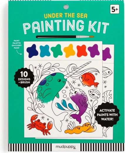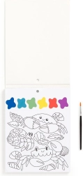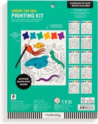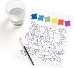 Il kit di pittura include un pennello e 10 fogli prestampati da colorare, ognuno con un motivo di vita marina e una tavolozza di colori. Basta bagnare il pennello e iniziare a creare! Ogni foglio è inoltre perforato, permettendo di separare facilmente l'immagine finita.
