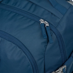 Il materiale idrorepellente si asciuga rapidamente ed è facile da pulire. Elementi pratici come il vano integrato per notebook, la tasca per occhiali, il moschettone per chiavi e la cinghia per fissaggio al bagaglio da viaggio facilitano l’organizzazione. La cintura pettorale e quella ventrale rimovibili aiutano a distribuire il carico in modo uniforme.