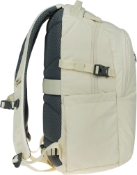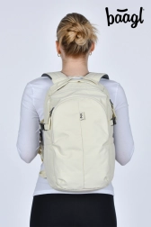 Zaino urbano BAAGL Dash color beige con struttura ultraleggera da 710 g, capienza 24 l e materiale idrorepellente. Grazie a schienale anatomico, spallacci regolabili e cinghie di supporto rimovibili è ideale per scuola, lavoro e tempo libero. Non mancano tasca per notebook, tasca per occhiali e cinghia per fissaggio al bagaglio. La certificazione GRS conferma l’origine sostenibile dei materiali.