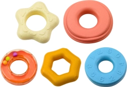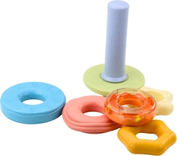Ogni anello ha una texture diversa e uno di essi è dotato di sonaglio. Questo giocattolo offre vari stimoli acustici e sensoriali che supportano lo sviluppo della percezione e della concentrazione. Tutte le parti sono realizzate in materiali sicuri e durevoli, privi di sostanze nocive, completamente adatti anche ai più piccoli utenti.