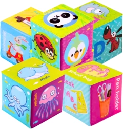 Scopri la magia dei blocchi educativi, che non solo aiutano nello sviluppo della creatività infantile, ma sostengono anche le capacità cognitive e l'apprendimento delle lingue. Ogni blocco è decorato con diverse grafiche – dalle lettere ai numeri fino alle immagini con nomi in inglese.