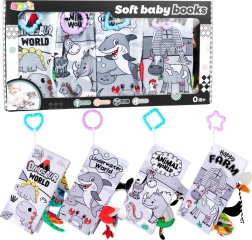 Il set di libri sensoriali morbidi per neonati offre un mondo ricco di temi che stimola l'immaginazione dei bambini e li aiuta a scoprire la diversità del mondo circostante. I libri sono realizzati con materiali morbidi e piacevoli che sono completamente sicuri per la pelle sensibile del neonato. Ogni libro contiene elementi sporgenti e pagine fruscianti che supportano lo sviluppo sensoriale del bambino - stimolano il tatto, l'udito e la vista.