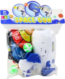 La pistola a forma di navetta spaziale è realizzata in materiale resistente e consente di tirare facilmente il meccanismo a molla per uno sparo preciso. Sei palline incluse con velcro aderiscono facilmente alla lavagna bersaglio, facilitando il conteggio dei punti. Un rapido gancio di montaggio per appendere al muro, alla porta o alla lavagna insieme a una comoda confezione in foglia consente un facile stoccaggio e trasporto.