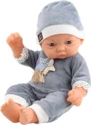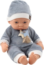 Bellissima bambola neonato in morbido pigiamino grigio con cappellino e applicazione a forma di stella è ideale per bambini dai 3 anni in su. Grazie al suo volto realistico, ai dettagli delicati e ai vestiti accuratamente realizzati, la bambola invita a un gioco piacevole e naturale.