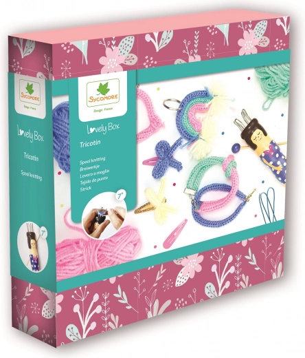 Con questo set creativo Lovely Box coinvolgete facilmente i bambini nel mondo della creazione grazie alla bambolina da maglia. Ideale a casa e in viaggio, il set è compatto e facile da usare. I bambini creeranno tubolari colorati con il filo che possono trasformare in accessori originali come clip per capelli o ciondoli. La guida inclusa offre un processo dettagliato passo dopo passo, così anche i principianti riusciranno facilmente nel loro primo lavoro a maglia.