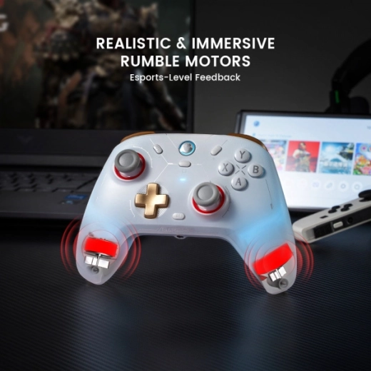 Il controller GameSir Cyclone 2 è dotato di levette Mag-Res™ TMR per un controllo preciso senza zone morte e grilletti con effetto Hall che assicurano fluidità e affidabilità. Il giroscopio integrato consente un monitoraggio preciso e motori vibranti asimmetrici nelle maniglie offrono vibrazioni realistiche. Microinterruttori sotto i pulsanti ABXY e D-pad tattile garantiscono una risposta rapida.