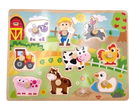 Questi puzzle in legno con pomelli sono un ottimo aiuto per i primi apprendimenti e il gioco in autonomia. Ogni pezzo si incastra perfettamente nella sede fresata sulla tavola, così il bambino allena facilmente logica, pazienza e il corretto abbinamento delle forme. Le illustrazioni vivaci della fattoria invitano a scoprire e divertirsi ogni giorno.