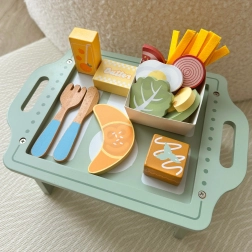 Set Colazione Woopie Green con Vassoio e Accessori in Legno Pastello