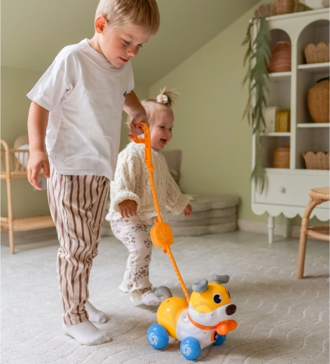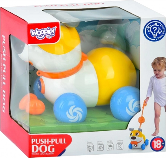 Usalo come gioco da spingere con asta lunga oppure come cagnolino da trascinare al guinzaglio. Ottimo per sviluppare camminata e coordinazione.