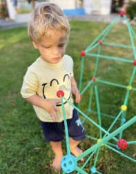 Il set è ideale per sviluppare le abilità creative del tuo bambino. Contiene un totale di 128 elementi che consentono di costruire diverse strutture spaziali, inclusa una tenda.
