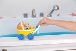 Il vivace passeggino BABY born Splish Splash con la bambola Emma trasforma ogni rituale serale in un divertente gioco d’acqua. I bambini possono spingere il passeggino lungo il bordo della vasca, fissarlo con le ventose e scoprire effetti d’acqua con la cappottina-parasole che diventa un colino. Emma è pronta a nuotare: basta caricare le sue braccia all’indietro e lasciarla andare – nuoterà da sola.