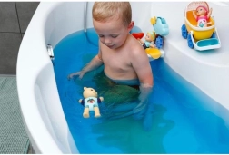 Con l'orsetto Baby Born Splish Splash il tuo bambino diventa il capitano della propria spedizione acquatica. Questo adorabile orsetto è progettato appositamente per i giochi in acqua e non ha bisogno di batterie per nuotare. Basta girare le sue braccia all'indietro e posarlo sulla superficie, dove si muove con leggerezza.