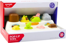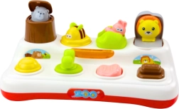 Sulla superficie del giocattolo si trovano diversi elementi: interruttore, manopola rotante, cursore e pulsanti – ognuno di essi attiva una finestra diversa da cui appare un adorabile animaletto. Il meccanismo Pop-Up porta tanto divertimento ai bambini e contemporaneamente insegna loro a comprendere la relazione di causa ed effetto – il bambino vede che l'azione compiuta provoca una reazione specifica.
