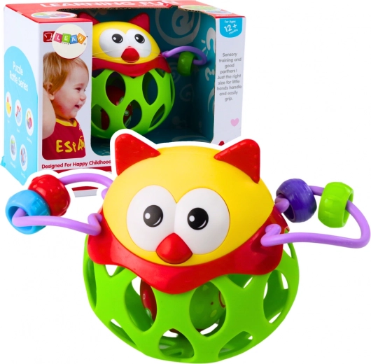 La palla con sonaglio a forma di gufo verde è una scelta ideale per lo sviluppo della coordinazione sia visiva che motoria nei bambini più piccoli. L'interno del gufo nasconde una piccola palla che, muovendosi, emette suoni piacevoli, stimolando l'udito e attirando l'attenzione del bambino.