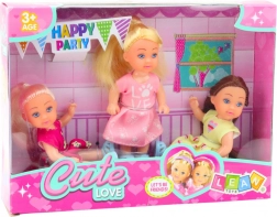 Questo set di tre mini bambole è ideale per il gioco creativo e lo sviluppo dell'immaginazione dei bambini. Le bambole sono state progettate con un'attenzione ai dettagli da colori unici di capelli, passando per abiti decorativi, fino a scarpe blu perfettamente abbinate. Sono pronte per la festa di compleanno, il che ispira i bambini a giocare a ruoli e divertirsi con gli amici.