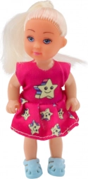 - Bambola con capelli biondo chiaro in abito rosa scuro con stelle