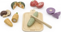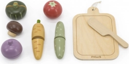 Il set in legno per il taglio delle verdure offre un modo divertente e sicuro per insegnare ai bambini le verdure. Include un tagliere, un coltello e sei tipi di verdura con velcro.