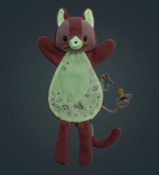 - Peluche a forma di gatto che si illumina al buio, offrendo al bambino un senso di sicurezza.