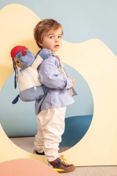 Questo zaino morbido e8 progettato appositamente per i bambini dai 12 mesi in su. Spallacci regolabili e cintura in vita assicurano che lo zaino si adatti comodamente alle dimensioni del bambino. Il cagnolino Jules sullo zainetto sorvegliere0 le preziose scoperte dei bambini durante le avventure a casa e all'aperto.