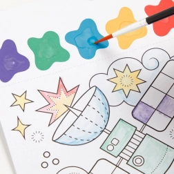 Adatto per piccoli artisti, questo set stimola il pensiero creativo, la motricità e la concentrazione. Bagnare semplicemente il pennello e iniziare a colorare i corpi celesti sui fogli con bordo perforato per una facile separazione del disegno finito. Rispettando le attuali norme di sicurezza europee, garantisce un'esperienza sicura per i bambini.