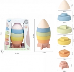 Divertente giocattolo impilabile a forma di razzo che insegna ai bambini a riconoscere colori e forme, allena la motricità fine e favorisce la coordinazione occhio–mano. Ideale per le prime scoperte e attività di impilamento.