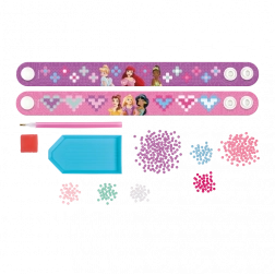 Crea i tuoi braccialetti scintillanti con il tema delle Principesse Disney con la pittura diamante! Questo set creativo contiene tutto il necessario per decorare due braccialetti originali con pietre brillanti.
