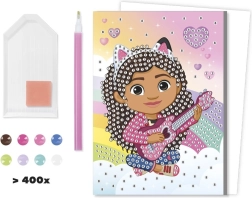 Scopri la gioia del fai-da-te con il set creativo per la pittura diamantata di biglietti. Crea un biglietto scintillante con il motivo La casa delle bambole di Gabby usando gemme colorate. Il set è ideale per bambini e principianti e contiene tutto il necessario – biglietto, gemme diamantate, applicatore e busta.