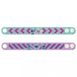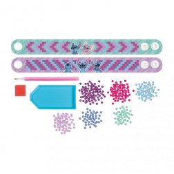 Crea i tuoi braccialetti scintillanti con motivo Stitch usando la pittura diamantata. Questo set creativo contiene tutto il necessario per decorare due braccialetti originali con gemme brillanti.
