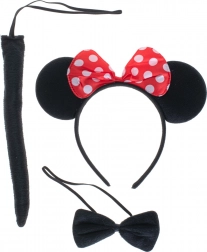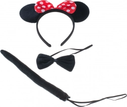Questo completo costume da topolino è ideale per Carnevale, Halloween, recite scolastiche e gioco in casa. Alle iconiche orecchie con fiocco rosso a pois si abbinano il papillon nero e la coda, così il travestimento è pronto in pochi secondi.
