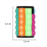 Il cilindro rotante con cinque anelli è un rompicapo logico coinvolgente per bambini e adulti. Il principio è semplice: in ogni fila c’è uno spazio vuoto che permette di spostare e ruotare i tasselli colorati per metterli nell’ordine corretto. Sembra facile a prima vista, ma garantisce ore di divertimento!