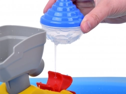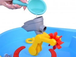 Il tavolo d'acqua interattivo blu è ottimo per il gioco sia all'interno che all'esterno. Include vari elementi mobili, che offrono ai bambini ore di divertimento. Ideale per giochi d'acqua, il tavolo può essere utilizzato anche come sabbiera.