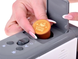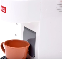 La macchina da caffè consente di versare acqua nelle tazzine e simula la preparazione del caffè, inclusa la scelta del tipo di bevanda: un’esperienza perfetta come in una vera caffetteria.