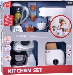 Scopri un set completo di elettrodomestici da cucina per bambini in elegante colore bianco, che permette ai più piccoli di imitare gli adulti e sviluppare creatività e abilità sociali. Il set include frullatore, macchina da caffè, tostapane e mixer da tavolo con effetti luminosi e sonori realistici, funzione di espulsione del toast e possibilità di versare acqua vera nelle tazzine. Un accessorio ideale per ogni cucinina dei bambini.