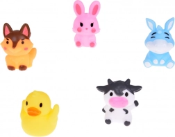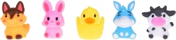 Il set comprende: 5 figurine di animali della fattoria in gomma, ognuna di colore diverso (coniglio, mucca, cane, anatra, asino) con dimensioni di circa 5 cm x 4 cm x 4 cm. Il giocattolo è realizzato con materiali di gomma sicuri, adatti alla pelle sensibile dei bambini. Facile da mantenere e molto resistente, garantisce una lunga durata.