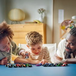 - Ruote mobili - ogni auto LEGO ha un casco nella cabina e ruote mobili, grazie alle quali i bambini possono organizzare le proprie gare