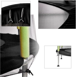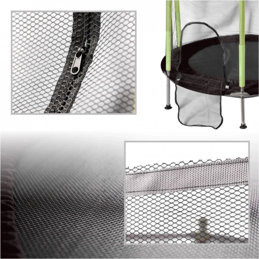 La rete protettiva avvolge saldamente il tappeto elastico e l’ingresso con doppia cerniera impedisce aperture accidentali. Le coperture in schiuma dei pali proteggono dagli urti, così i bambini possono giocare in totale serenità.
