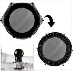 Sei gambe in acciaio con piedini antiscivolo mantengono il trampolino ben fermo. Il tappeto elastico e le 36 molle robuste garantiscono un rimbalzo fluido e atterraggi confortevoli.