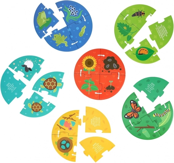 Puzzle Scopri il Ciclo della Vita aiuta a risvegliare l'interesse per il mondo naturale. Questo set include sei piccoli puzzle che illustrano le fasi della vita di una coccinella, di una farfalla, di una tartaruga, di una rana, di un fiore e di un uccello. Il prodotto contribuisce allo sviluppo della coordinazione occhio-mano, dello sviluppo cognitivo e della capacità di risolvere problemi.
