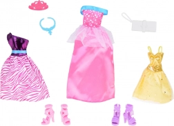 Il set di abiti alla moda ANLILY è perfetto per i bambini che amano lo stile e il design. Include tre abiti diversi - ognuno con un taglio unico e colore, due paia di scarpe eleganti con tacco, una borsa stilosa, una collana blu e una delicata corona, ideale per ogni piccola principessa.