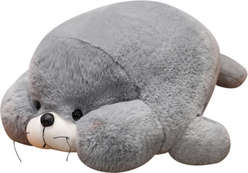 La foca di peluche è realizzata con materiale di alta qualità in un delicato colore grigio, che ricorda una foca realistica con una forma amichevole e leggermente appiattita. Il suo corpo arrotondato, le pinne evidenti e il dolce viso con naso e baffi ispirano immediatamente fiducia e la necessità di abbracciarla.