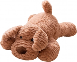 La sua espressione amichevole con un grande naso, lunghe orecchie e una coda soffice gli conferiscono un aspetto eccezionalmente accogliente e adorabile. L'animale è disteso in una posizione comoda e naturale, come un vero cucciolo di cane. Questa forma stimola l'immaginazione e la creatività dei bambini.